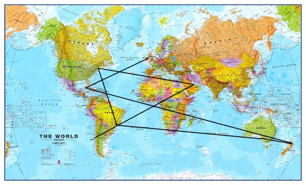 Een duidelijke instructie: teken een driehoek! Wellicht hebben sommigen hier nog handig gebruik gemaakt van de geodriehoek (in het belang van de puzzel gespeld als ‘geo driehoek’). De driehoek tussen nummers drie, vier en negen geeft de oplossing prijs, wanneer je goed let op wat er binnen deze driehoek valt. De enige letters die binnen deze driehoek vallen zijn de ‘s’ van ‘Welkom op reis‘, de ‘in’ van ‘Bestemming‘ en ‘tra’ van ‘trappelen‘. Samen vormt dit: Sintra! En mocht het nog onduidelijk zijn: het enige land dat binnen deze driehoek valt is Portugal.