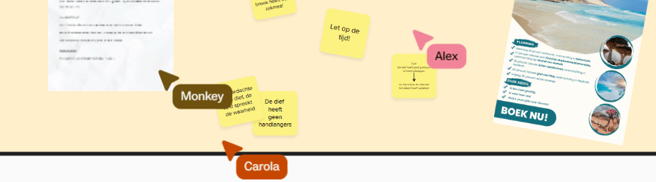 Volop informatie te vinden in de ‘Mural’ van De Diefstal van de Drakenbloeddiamant! Maar waar te beginnen? “Uren puzzelen, 6 A4’tjes aantekeningen, tientallen appjes met collega-puzzelaars… Sjonge, hoe verzin je het!”, aldus Kampeerbusje Tiel. De versleutelde getuigenissen waren niet essentieel, maar wel heel erg handig voor het oplossen van de diefstal. De getuigenis van Abdul was genoteerd met dansende mannetjes. En gelukkig werden we daarbij flink geholpen door de ‘sleutel’ op het bureau van de rechercheur.
