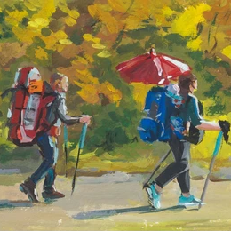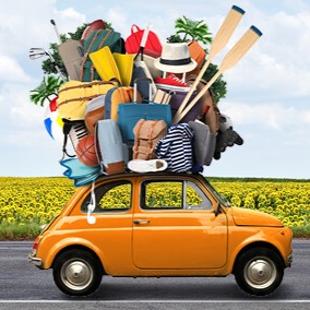 …gaan op reis en nemen mee: wandelspullen, spelletjes, een lekker biertje, en misschien wel een pasgeboren baby?