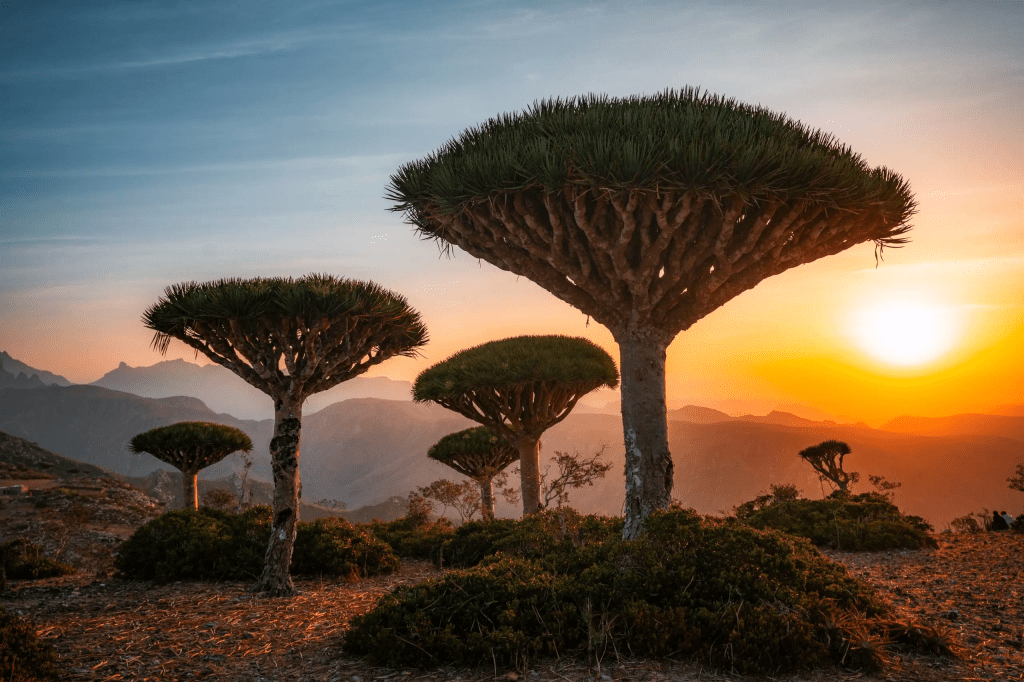 We zijn beland op Socotra, een afgelegen eiland voor de kust van Jemen. Een bijzonder eiland met een unieke natuur. Beroemd zijn vooral de drakenbloedbomen: indrukwekkend vanwege hun vorm én de kleur van het sap dat zo rood is als drakenbloed.